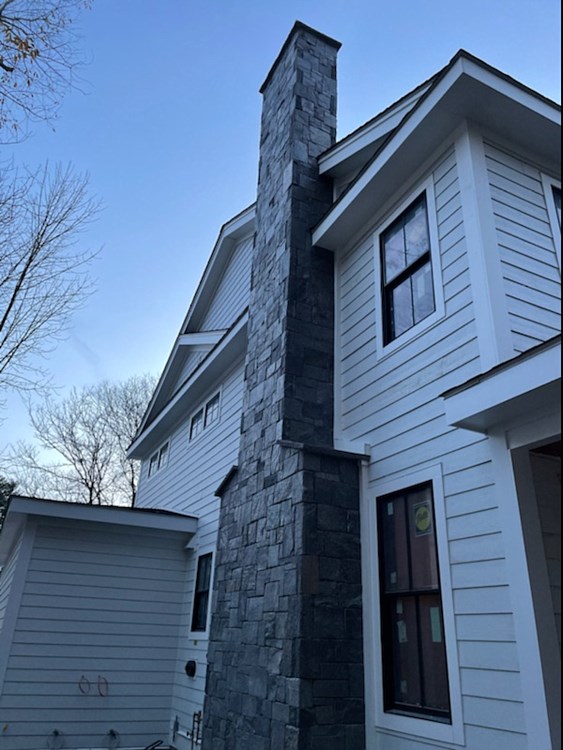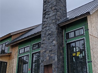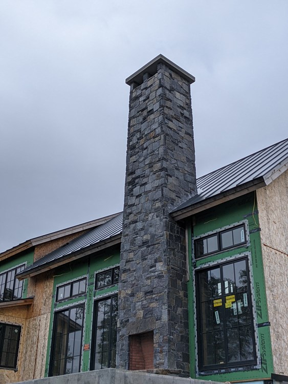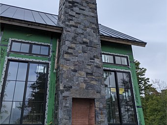 Black river mica sq rct - expterior fireplace -